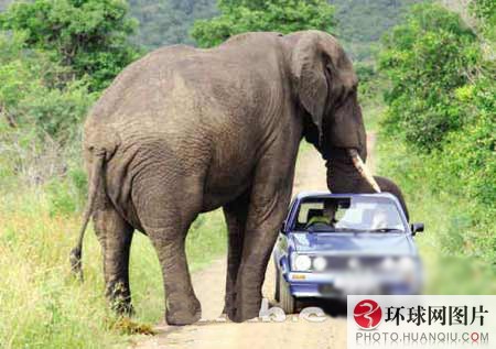 兄妹野生动物园游玩遭遇大象 汽车顶被压瘪
