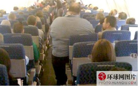 据英国媒体2009年11月27日报道,在美国航空公司的某次航班上。一名体型过于肥胖的乘客硬生生挤在狭窄经济舱座位里,与他身边的乘客相比,他的身形真是可以用“庞大”两个字来形容。只见他少半个臀部坐在座位上,其余部分则“担”在扶手上,“溢”到座位外,看上去坐得真不是很舒服……