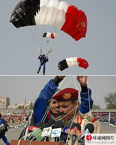 2007年9月10日,也门副总参谋长奥贝德将军在首都萨那军事学院毕业生典礼上致辞。也门特种部队一名伞兵在该毕业典礼上表演时,因落地欠准确,将降落伞罩在了正在致辞的奥贝德将军头上。