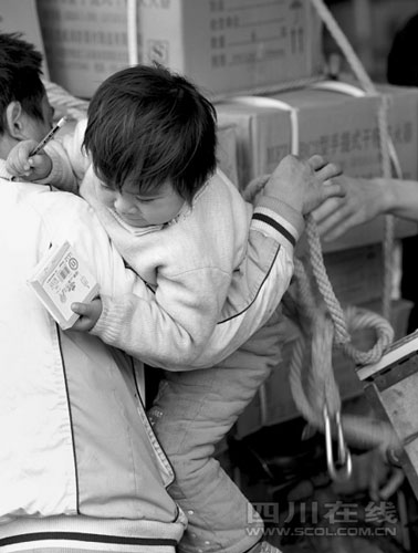 “两年多来,我又要忙着挣钱,又要照顾闺女,实在没办法,只得每天带着孩子去干活路。”因为陈古盛每天要用三轮车帮各商家转运机电产品,论件计酬,为了多挣钱,他每次将货物堆得高高的,只是在货堆上留出一个能容纳娃娃的空隙。