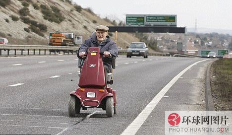 2009年3月,英国肖勒姆市90岁退休老人斯坦利·墨菲,在女儿不知情的情况下,驾踏板车独自外出买报,结果一出门就迷路了,闯入过往车辆时速高达102公里的高速路,过往车辆都没有停下报警,最终还是铺路工人发现并拦下了他。久未出门的斯坦利拥有的驾照还是二战时的拖拉机驾驶证,被拦下时他根本不知道自己在哪儿。