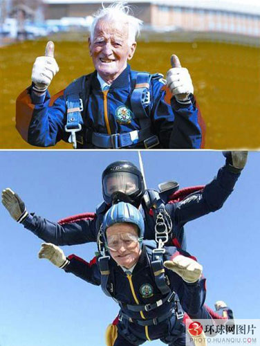 97岁老顽童高空跳伞贺寿