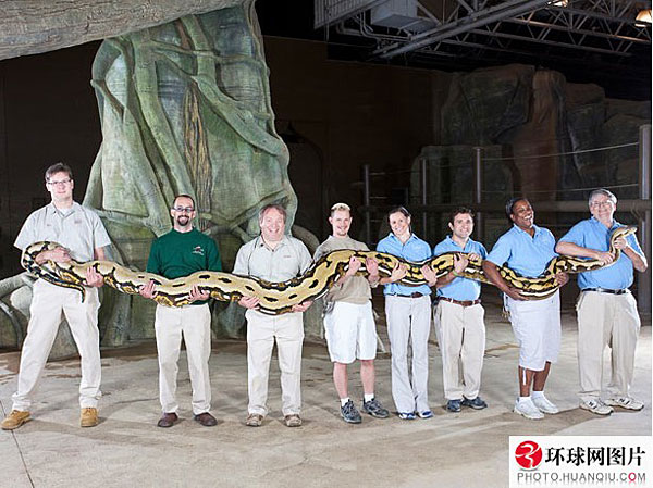 美国俄亥俄州一家动物园中生活着目前人类捕捉到的世界上身体最长的蛇——一条长达7.32米的蟒蛇。网纹蟒“绒毛(Fluffy)”被认为是笼中蛇之“寿星”。
