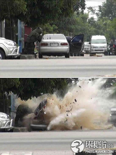 泰拆弹专家查看可疑汽车遭遇爆炸 幸运生还
