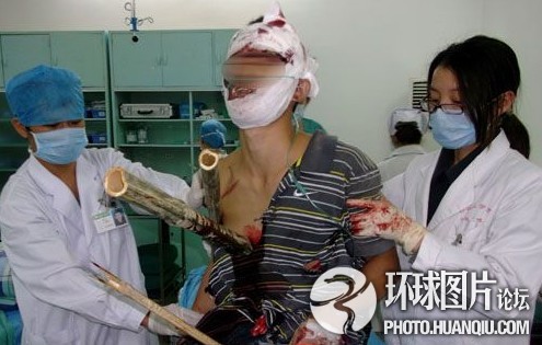 5根竹子插进了胸膛、腿部……他不是闯进了《十面埋伏》里的竹阵,而是真真实实在一场车祸里中了“招”。2011年11月,临桂县人民医院接诊了这样一名伤者,经抢救,竹子已全部被拔出。据悉,男子身上有5根竹子,其中4根穿过他的身体,最长的一根长约两米。经检查,男子的胸部、腿部都被竹子插穿。医生说,这名伤者很幸运,虽然身上几处被竹子插穿,但都没有致命伤。据了解,男子是临桂县五通镇人,姓石。民警称,当时农用车停在路边,司机正在车后整理竹子,而石某骑着摩托车飞撞而来,两人都被竹子“串”了起来。农用车司机当场死亡。