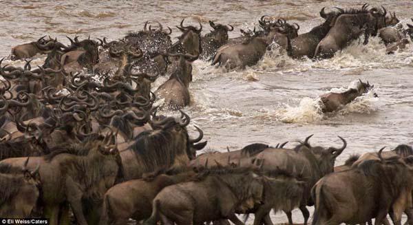 环球网记者朱盈库报道,据英国《每日邮报》3月8日报道,近日,一只角马在随上百万只角马大军跨越非洲马拉河前往肯尼亚进行交配时,在上岸后遭到一条重达500公斤的鳄鱼的威胁。和大多数同类一样,这只角马利用敏捷的动作惊险地逃过了鳄鱼的大嘴。这个千钧一发的时刻被蹲守在附近的摄影师捕捉了下来,为我们呈现了非洲大草原壮观而危险重重的自然景观。
