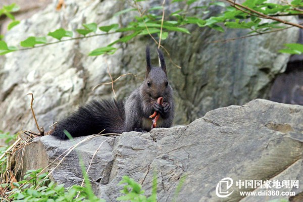 年幼的北松鼠好奇心很重,找到条蚯蚓,也要放在嘴里尝尝再吐掉。(《博物》2012年第3期)
