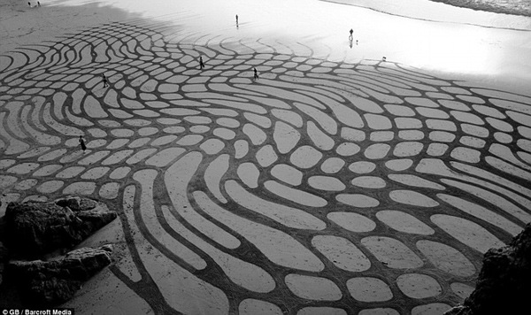 环球网记者朱盈库报道,据英国《每日邮报》3月12日报道,美国艺术家Andres Amador在海滩创作巨幅画作已有12年了。他以耙子为画笔,以沙滩为画布,在涨潮之前将预先设计好的图案和几何图形表现出来,有的画作长500英尺,宽300英尺,既壮观又精美。他说这项喜好的灵感来自英国的麦田怪圈。
