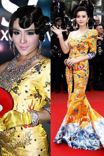 山寨范冰冰着龙袍来看秀