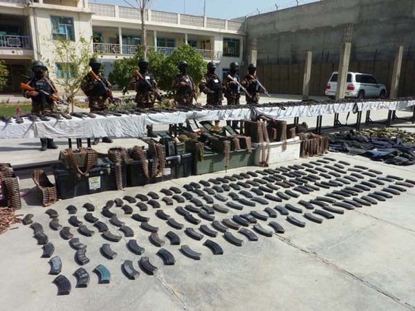 阿富汗警察部队经过北约部队10余年的精心指导和正规培训,战斗力终于得到了提升。图为2012年3月26日,阿富汗警察部队向媒体展示其缴获的大量武器弹药及10余吨炸药。