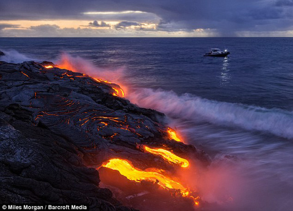 环球网记者朱盈库报道,据英国《每日邮报》3月28日报道,疯狂的岩浆摄影师Miles Morgan近日在夏威夷的大岛近距离拍摄了基拉韦厄火山。他在这座世界上最活跃的火山喷出岩浆的地方架着三角架,将拍摄模式调到自拍,然后站在离岩浆特别近的地方,涉险拍下震撼的画面。