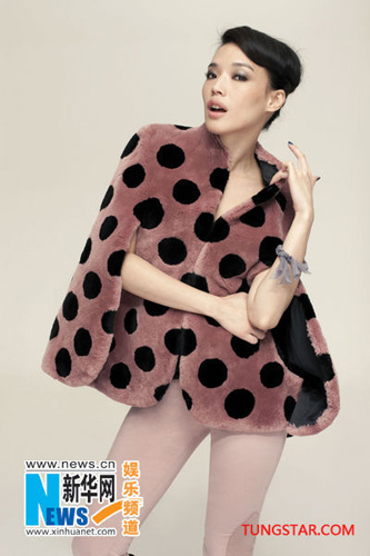 舒淇早前为电影《情谜》拍摄的写真曝光,性感女神穿波点皮草可爱俏皮,笑容灿烂。