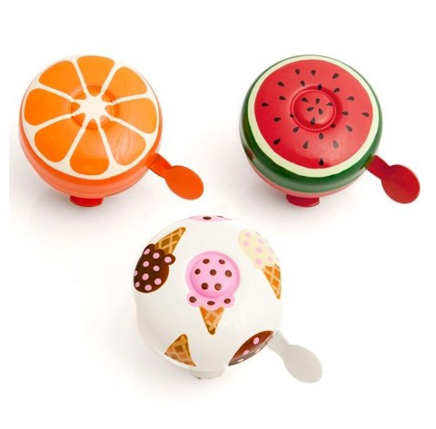 铃~铃~~自行车应该是不少人的代步工具,尽管平时大多开车,但是我也喜欢享受骑着单车,乘风而行的快感。今天要分享这些看来美味可口的自行车铃铛,一共有冰淇淋、柳橙和西瓜等图案,想不到除了警示的作用,这些养眼铃铛的出现,更为视觉添上了不同的感受,在一声又一声的铃铃声中,好像也传来了春天和夏天嬉戏的打闹声~~