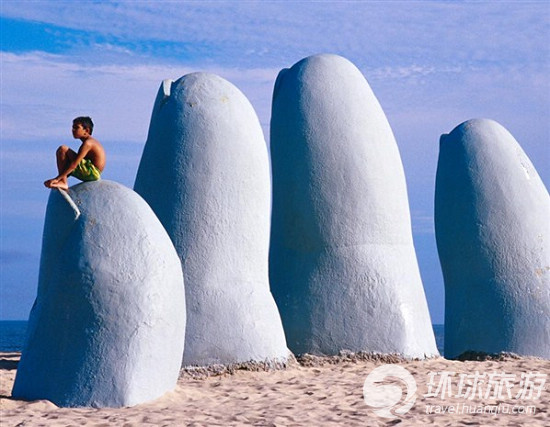 这座出自智利艺术家之手的雕塑于1982年落成。由于埃斯特角城风沙强烈,雕塑中的每一根“手指”都经过钢条、金属网和防腐蚀溶剂加固。据说,雕塑的灵感正是来源于当地强烈的风沙,它仿佛时刻警示着跳进这片波涛汹涌海水中的泳者要小心。