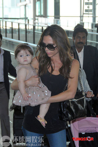一向爱耍大牌的维多利亚无论在北京还是香港,出席宣传活动同样面黑黑,架子十足。26日下午2时,维多利亚乘七人车离开酒店到机场,下车后抱着女儿,架上太阳镜继续低头黑面,相反8个月大的女儿对记者的镜头十分敏感,可爱非常。之后维多利亚由保镖护送直入离境大堂,结束亚洲宣传之旅。