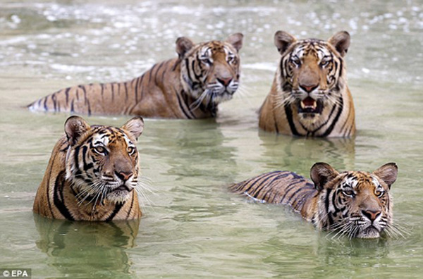 据英国《每日邮报》4月24日报道,泰国北碧府有一座老虎庙--一个饲养着许多老虎的寺庙,是当地一个有名的旅游景点。这家寺庙的和尚1999年开始收养老虎,到现在已经拥有数只老虎。这家老虎庙对公众开放,并收取一定的费用。游客多交一些费用,就能和经过训练的温顺老虎合影,真是还可以亲手拍摸老虎。