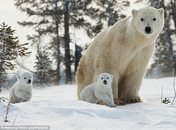 据英国《每日邮报》4月26日报道,美国知名野生动物摄影师托马斯•D•麦格森(Thomas Mangelsen)日前在加拿大哈德逊湾等待了数十日,拍摄到了北极熊带着幼崽离开家挑战风雪的画面。据悉,这两只幼崽出生时体重不到2磅(约0.9千克),但在营养丰富的母乳的滋补下,成长得很快。据悉,一般情况下,小北极熊出生后2-3年就能独立生活。托马斯说,“北极熊妈妈陪伴幼崽前往35英里外的哈德逊湾,教他们如何战胜风雪,强健体魄,以及如何在海面浮冰上捕食海豹。”