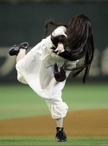 贞子以嘉宾身份出现在东京巨蛋棒球赛。