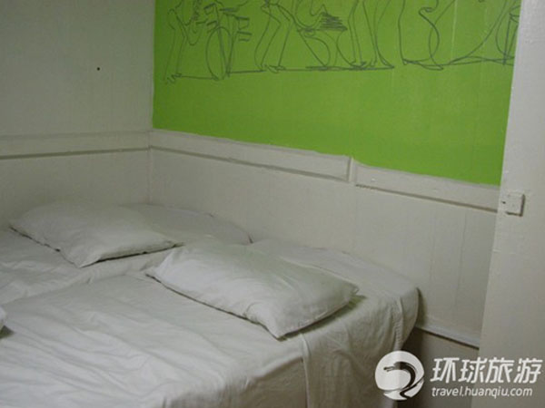 这是一家新型的实惠酒店,房间里只有一张双人床,卫生间是公用的。但是一顿晚餐的价钱你就可以在这里住上一晚。