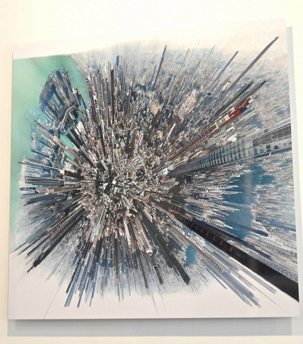 居住在美国纽约市的日本艺术家Sachigusa Yasuda创作了一组城市360度全景俯瞰图。每幅作品都使用了多达300张照片,然后用计算机技术整合成一张,结果呈现出令人眩晕的炸开的摩天大楼群,如同从万花筒中看到的一半。与一般航拍景象不一样的是,这些作品呈现了经过细致组合的建筑群,给人留下好像爆炸感觉的画面。