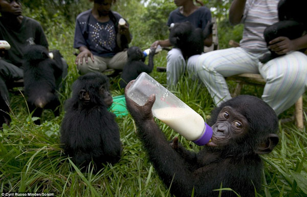 【环球网综合报道】 法国摄影师西里尔•鲁沃索近日拍摄了一组反映刚果民主共和国境内动物避难所的照片。他认为,那里是“矮猩猩的天堂”,“避难所是完全不同的样子,这些小矮行星喜欢玩乐,充满好奇心,并且乐于和我们亲近。在这里,我们不仅仅是观察者,很难抗拒它们的亲近,就像是它们中间的一分子”。