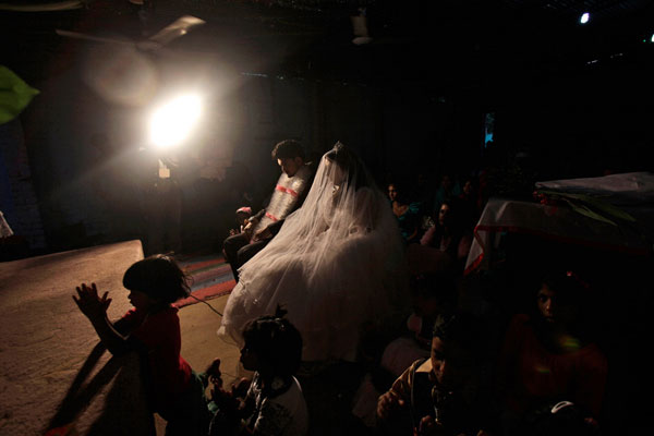 当地时间10月5日,一对新人在巴基斯坦首都伊斯兰堡的基督教社区的教堂举行婚礼,他们虔诚的祷告着。