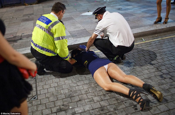 城市夜生活中的女郎们本来个个打扮得花枝招展,但醉了,就顾不了头发凌乱,管不了春光乍泄露了底,醉倒街头。年轻男子本来有型,但喝高了,或呕吐大作,或喧哗叫嚣,或殴斗捣乱,要警员挥棍制服……