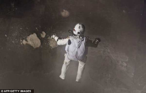 鲍姆加特纳攀升到40000米高空用了两个半小时,降落用了不到十分钟。