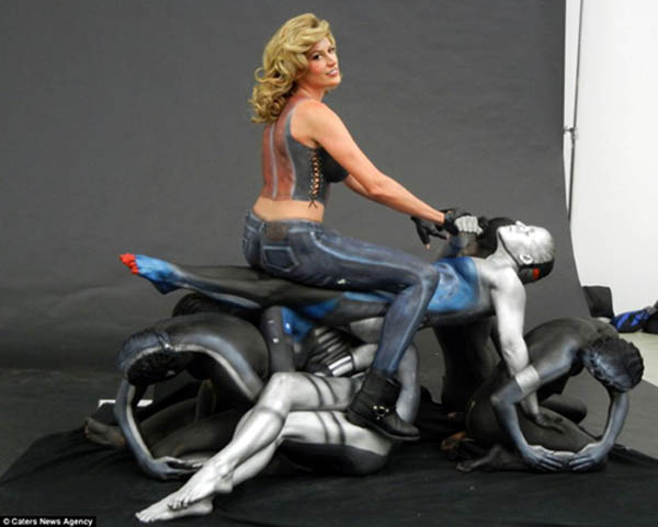 旧金山的艺术家Trina Merry为全裸的模特涂上彩妆,组合成了奇怪的“摩托车”。