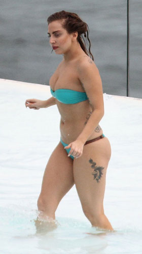 据英国《每日邮报》11月11日报道,美国歌手Lady Gaga近日赴巴西举行巡演。在完成与粉丝见面和其他安排之后,她终于有时间放松一下。日前,她穿着蓝色抹胸比基尼,在该国的一处海边泳池里畅游,演绎湿身诱惑,秀出丰腴身段和身上多处纹身。在人们见惯了她奇装异服的装扮之后,她这种平庸无奇的泳装装束着实让人大感舒服。