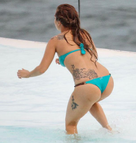 Lady Gaga巴西泳池演绎湿身诱惑秀纹身