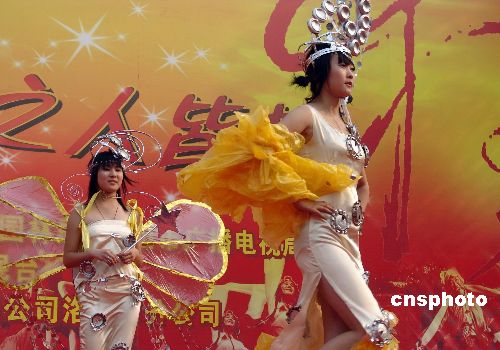 4月28日,洛阳幼儿师范学校在洛阳市东周王城广场进行环保时装秀,学生们展示了利用废旧光碟、塑料布、竹签、布头等原料制作而成的服饰,向人们传达绿色环保理念,增强市民“营造绿色城市、呵护地球家园”环保意识。 中新社发 巩卫东 摄