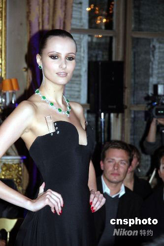 以“美丽永恒”为主题的中华风尚珠宝艺术展十月二日晚在法国巴黎举行。图为模特儿在展示中国珠宝作品。中新社发 吴卫中 摄