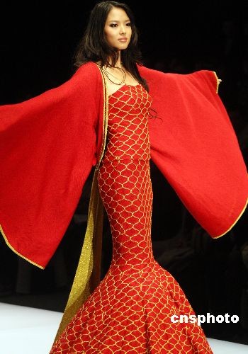 11月7日,正在北京举行的中国国际时装周(2009春夏系列发布)上演中国台湾时装设计师“GIOIA PAN——潘怡良”作品发布会。本次发布会以“蝶恋花”为主题,其中“蝶”舞动出女性风采,“花”展现出女性的柔美。图为模特展示潘怡良作品。中新社发 钱兴强 摄