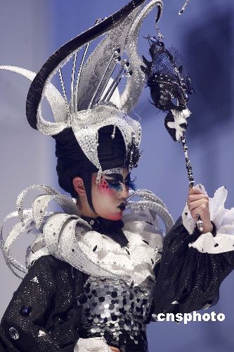 11月12日,“美丽盛典”2008中国国际时装周彩妆造型设计大赛在北京举行。大赛主题为“幻彩魔方”,结合国际色彩流行趋势,强调缤纷颜色的互相碰撞组合,就像魔方上的色块,有趣而且多变,让造型设计变得更加艺术。中新社发 盛佳鹏 摄