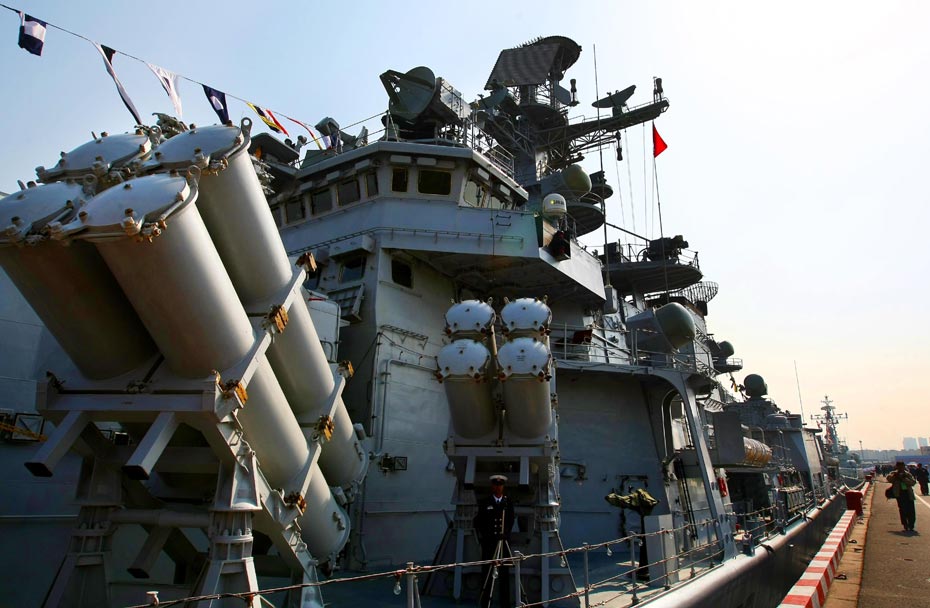 4月22日,停靠在青岛解放军海军码头参加庆祝中国人民解放军海军成立60周年多国海军活动的各国舰艇,各国海军官兵相互登舰参观,同时各国舰艇对青岛市民开放。中新社发 宋吉河 摄