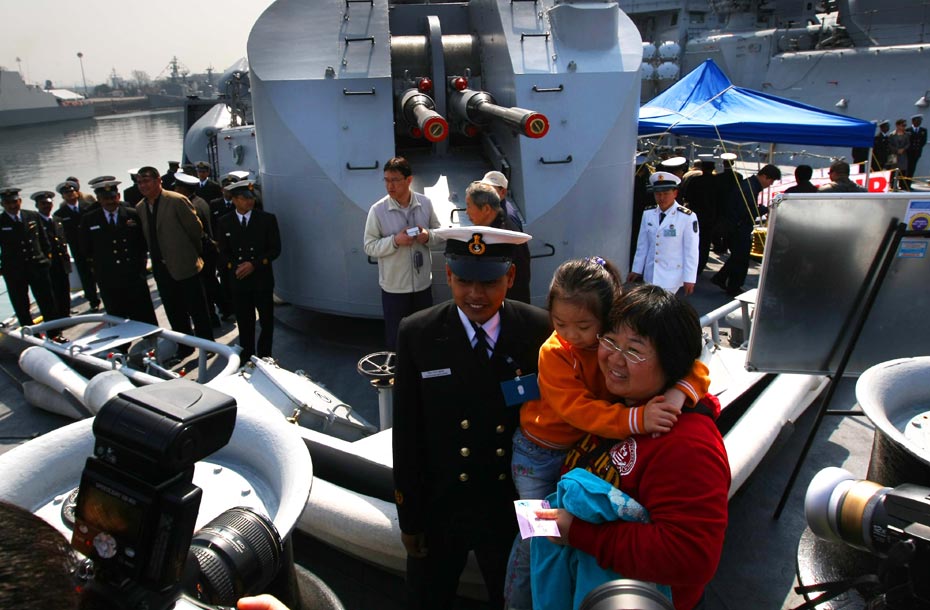 4月22日,参加庆祝中国人民解放军海军成立60周年多国海军活动的各国舰艇停靠在青岛海军码头,各国海军官兵相互登舰参观,同时各国舰艇对青岛市民开放,令各界人士在参观中大开眼界。中新社发 宋吉河 摄