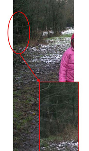 仔细看看图上放大的区域,一个穿西服戴墨镜的人看向了镜头