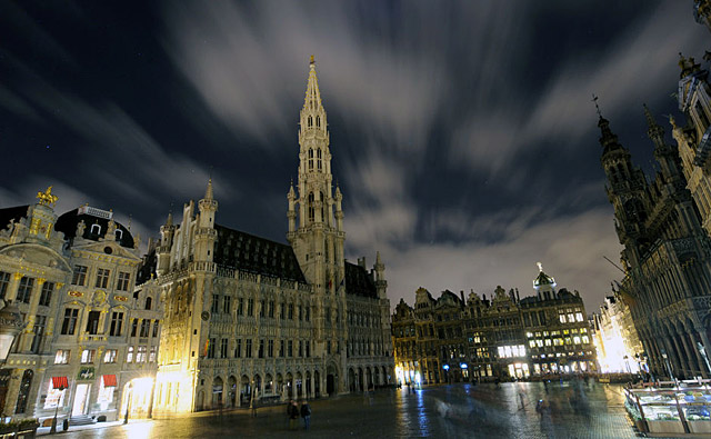 比利时布鲁塞尔:3月28日晚20点30分后,比利时首都布鲁塞尔市中心的大广场的景观照明被熄灭。