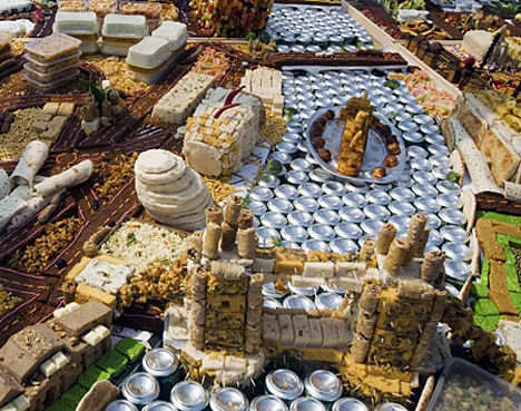 据国外媒体报道,如果电影《查理和巧克力工厂》的主角威利旺卡的糖果屋是真实的,那可是一样梦幻的世界:有太妃糖建造的摩天大楼、巧克力河流和脆饼与生奶油打造的城市。虽然生活在可食用世界里只是一个梦想,但以下用食物打造的十大秀色可餐的建筑别有一番趣味。1、可吃的伦敦 食物艺术家和业余厨师打造了这一可吃的伦敦街景图,使用的材料有比萨、鱼、三明治、椒盐卷饼、汽水罐头、面包棒和橄榄。伦敦的大理石拱门是用椰肉和欧亚甘草打造的,而不列颠博物馆则是用更传统的姜饼塑造的。