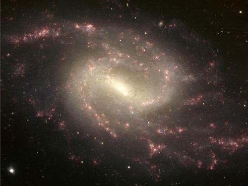 图中显示的是“NGC 3359”星云中心刚刚形成的一根根长条。“NGC 3359”星云是位于大熊座的一个螺旋星云,距离地球约为4900万光年。恒星、气体或尘埃,被拉长或拉成矩形状,就形成了这些明亮的长条。这些长条在螺旋星云中较为常见。