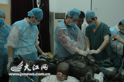 图为手术完成了,“壮壮”准备下手术台