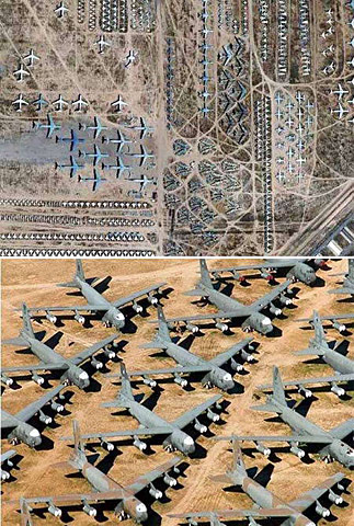 飞机墓地位于美国亚利桑那州图森附近的戴维斯蒙森空军基地。如果你没有亲眼见过,是很难理解它有那么庞大的规模。该基地拥有4000多架军用飞机,其中包括B-52和隐形轰炸机。
