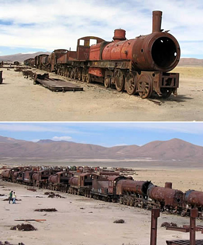玻利维亚所有报废的老机车都被扔到该国西南部旷野之中,好像是在等待地球站长将它们送入熔炉。
