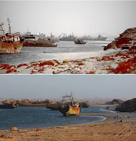 努瓦迪布市是毛里塔尼亚第二个大城,世界上最大的船舶墓地就坐落在这。岸边,水中和海滩上都不难发现数以百计生锈的船舶。
