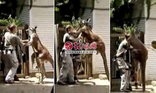2008年7月27日,在美国亚特兰大动物园,袋鼠与动物管理员“大打出手”,袋鼠将管理员踢了几脚后迅速逃离。袋鼠极少攻击人类,不过这个罕见现象刚好被一位在场的游客用视频记录了下来。
