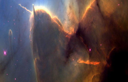 三叶星云(M20)是位于人马座的发散和发射混和型星云,距地球5000光年。它的彩色照片非常美丽,可以看见它桃红色和亮蓝色的部分。由遮掩物质形成的暗沟把这个星云分为三个区域,所以它被称为三叶星云。