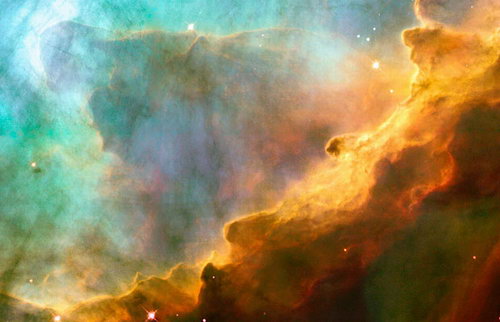 由恒星周围的粒子辐射构成,呈现出梦幻般的波浪状,在欧米加星云(M17,距离人马座大约有5500光年)中显得尤为突出。