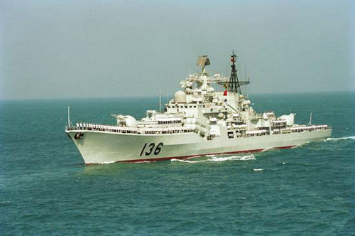 图为136“杭州”号导弹驱逐舰。