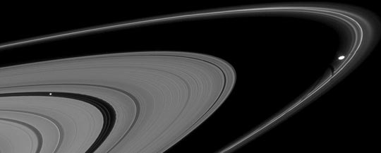 据英国媒体报道,NASA公布了一批探测器新近传回的照片,在这些照片中,我们可以清楚地看到土星光环及卫星。